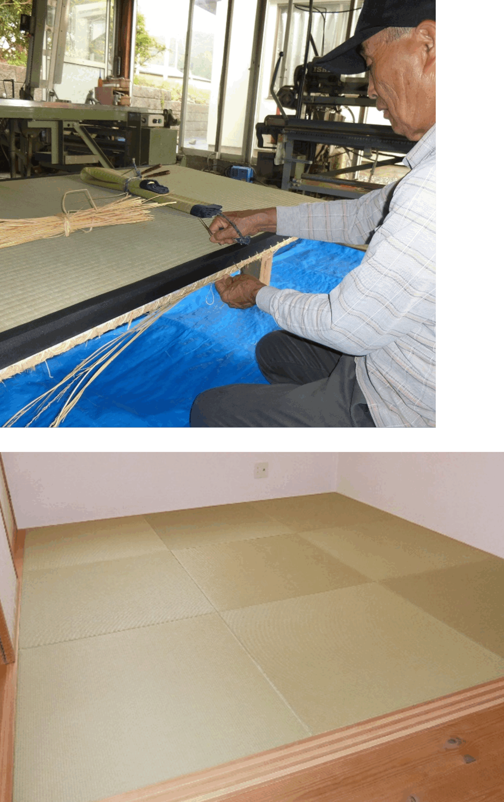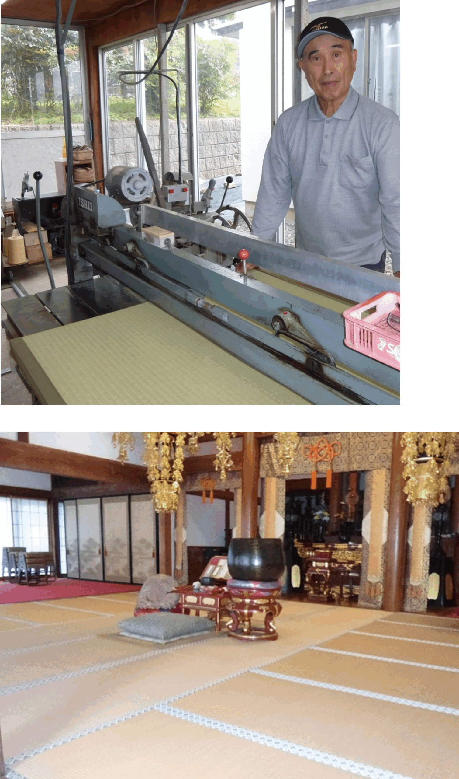 神社仏閣から一般住宅まで畳工事に係る高度な技術を有する。特に畳を手縫いで製作する伝統技法に優れ、神社仏閣向けの特殊畳である「紋縁畳」の製作に精通している。