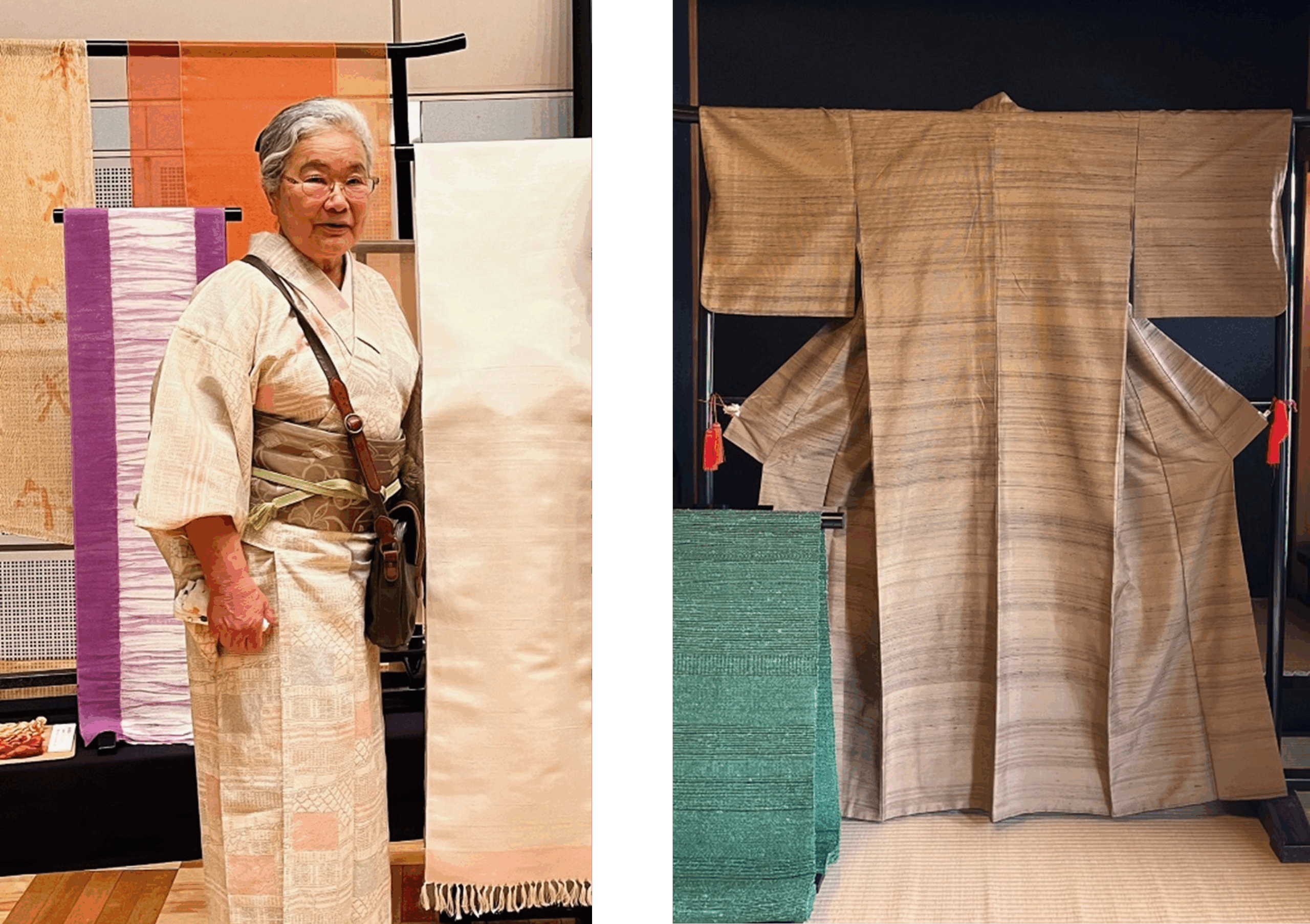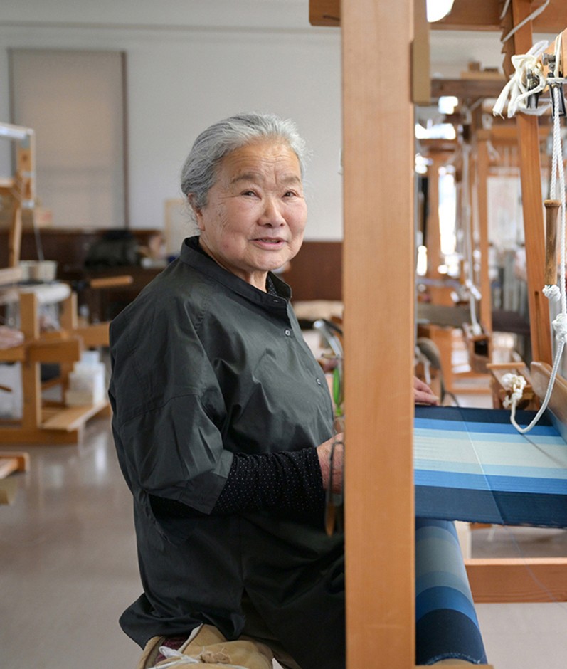 糸づくりから染色・設計・手織りまで一貫して担う高度な染織技術を有し、節のある絁絹を用いた「諸絁紬」の織り技法を開発。調整が難しい節糸を、設計力と織り技術の高さで克服し、侘び寂びのある風合いと軽い肌触りを実現した。この「諸絁紬」を使用したジャケットは「JAPANブランド育成支援事業」に採択され、国内外で展示されるなど高く評価されている。